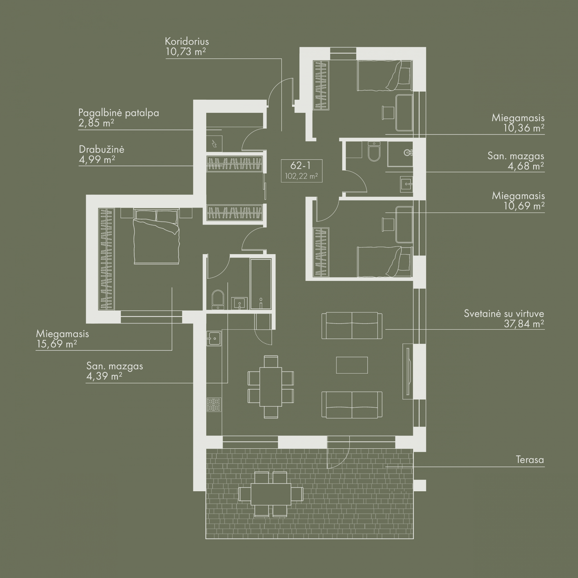 - Plotas 102.22 m2